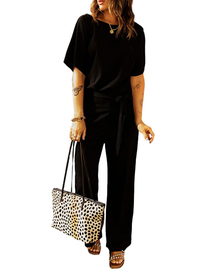 Azura Exchange Комбинезон с широкими штанинами и поясом