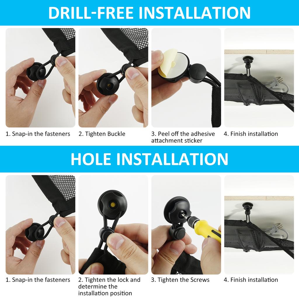 [Простота установки] Сетка для организации кабелей поставляется с кнопками и винтами сливового цвета, которые помогут вам быстро и надежно закрепить сетку для организации кабелей под столом, таким образом, вы можете с уверенностью организовать все кабели и не беспокоиться о том, что они упадут.. А когда сетка-органайзер вам не нужна, ее можно легко снять.