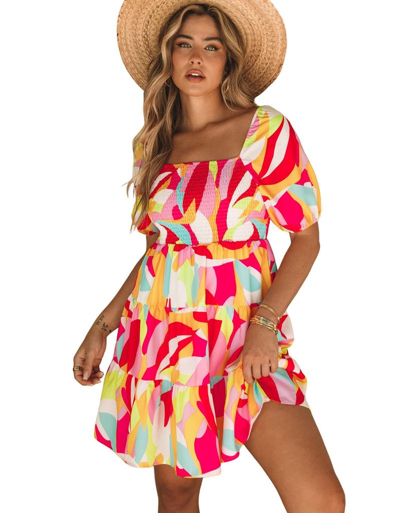Azura Exchange Мини-платье с геометрическим принтом и сборками