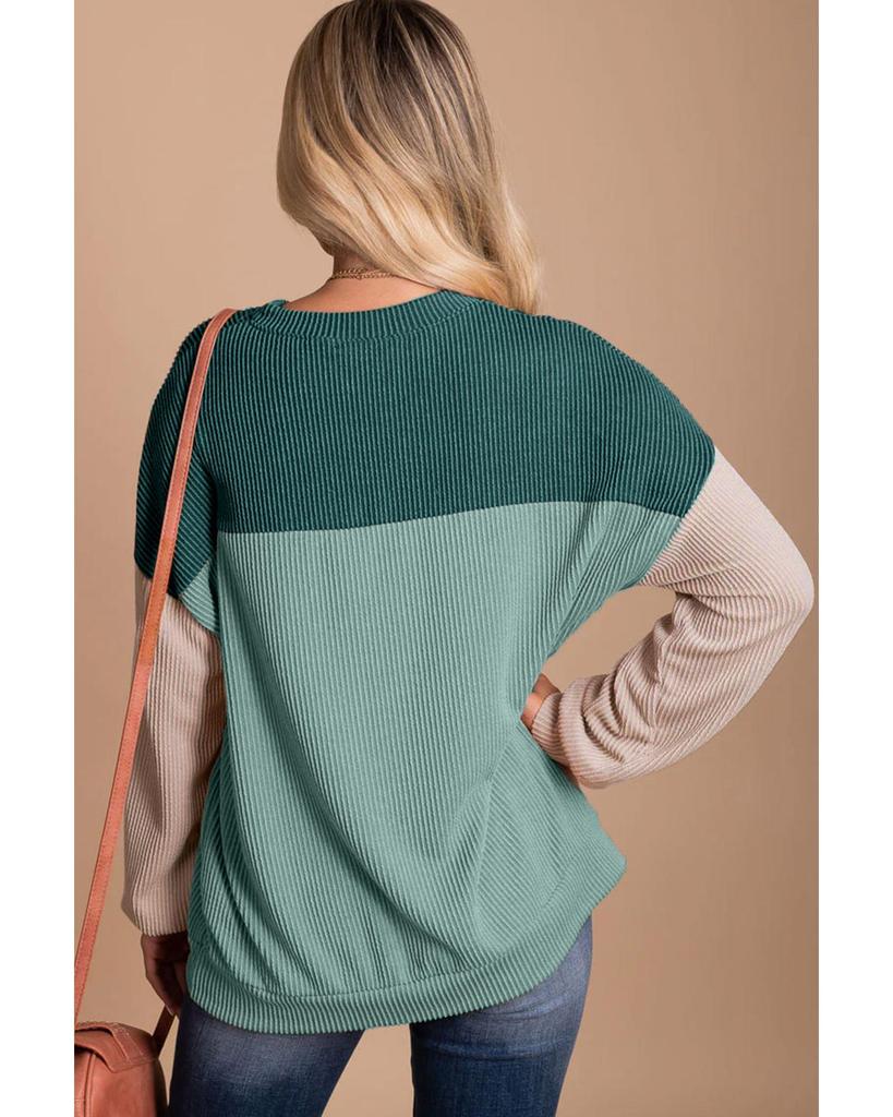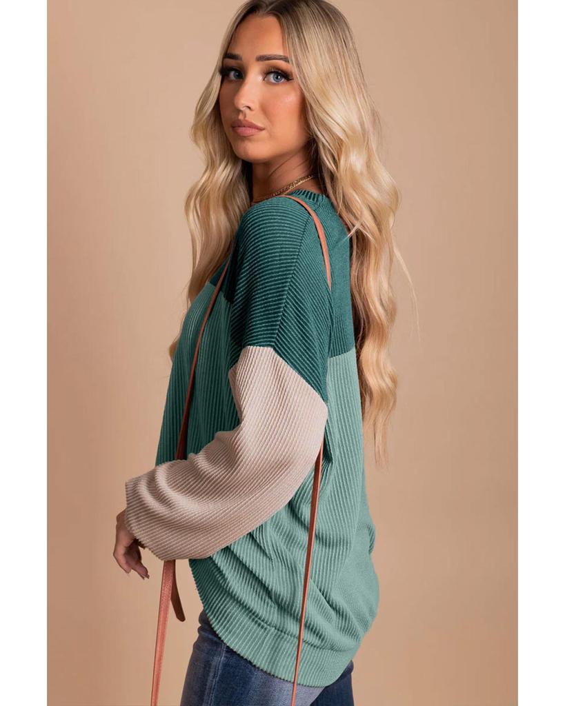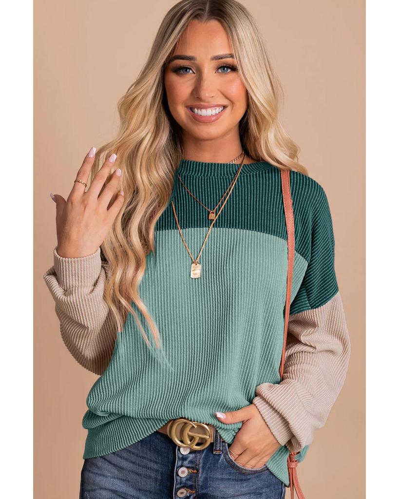 Azura Exchange Свободный топ с длинными рукавами и ребристым узором зеленого цвета