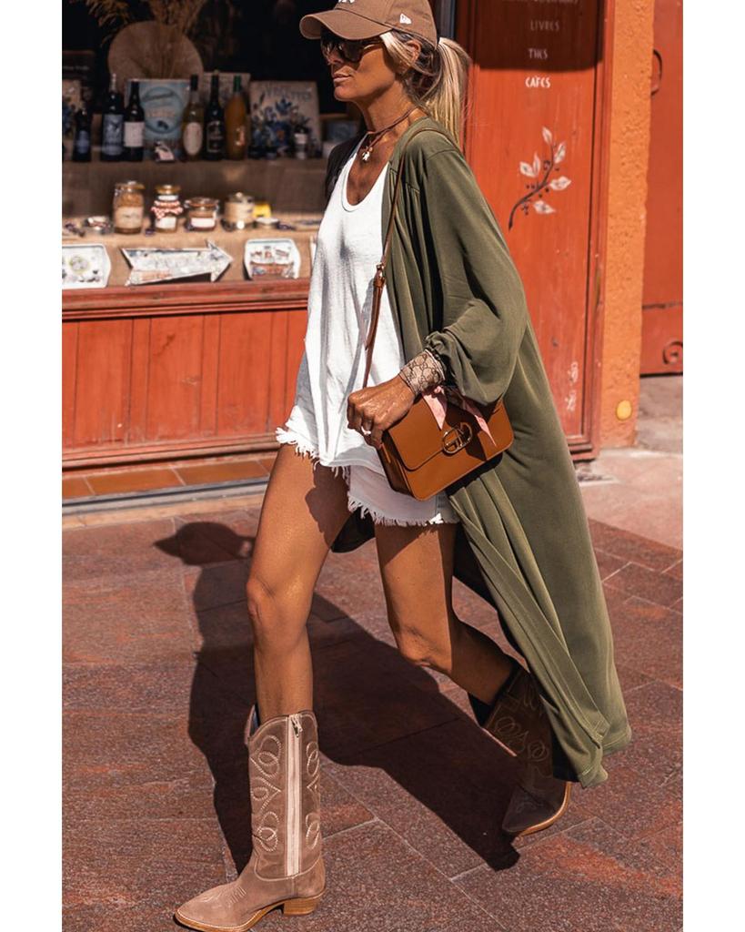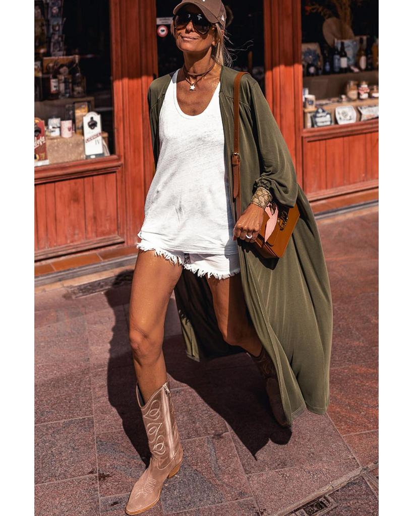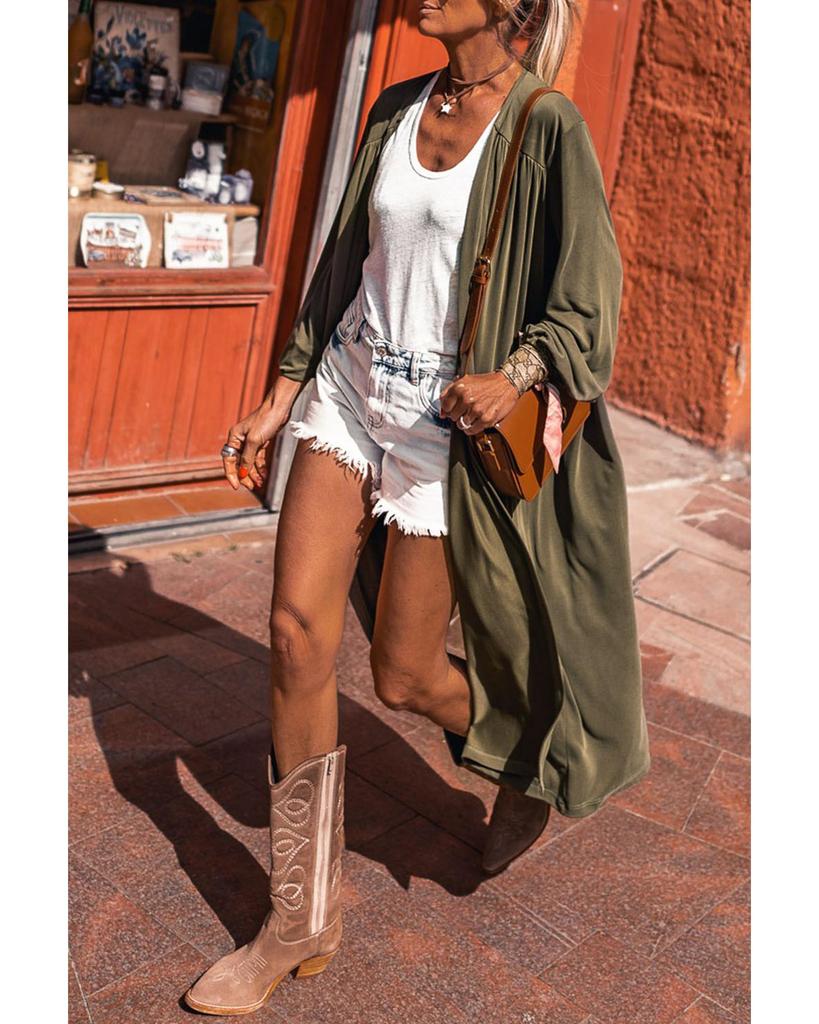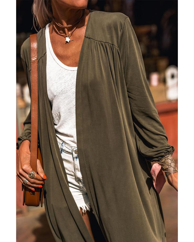 Azura Exchange Зеленый легкий длинный рукав кардиган с открытым передом