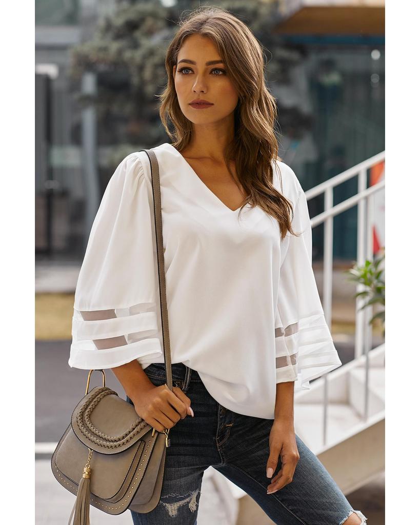 Azura Exchange Блузка свободного кроя с расклешенными рукавами и V-образным вырезом