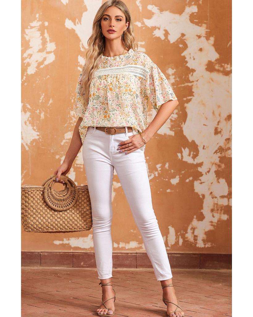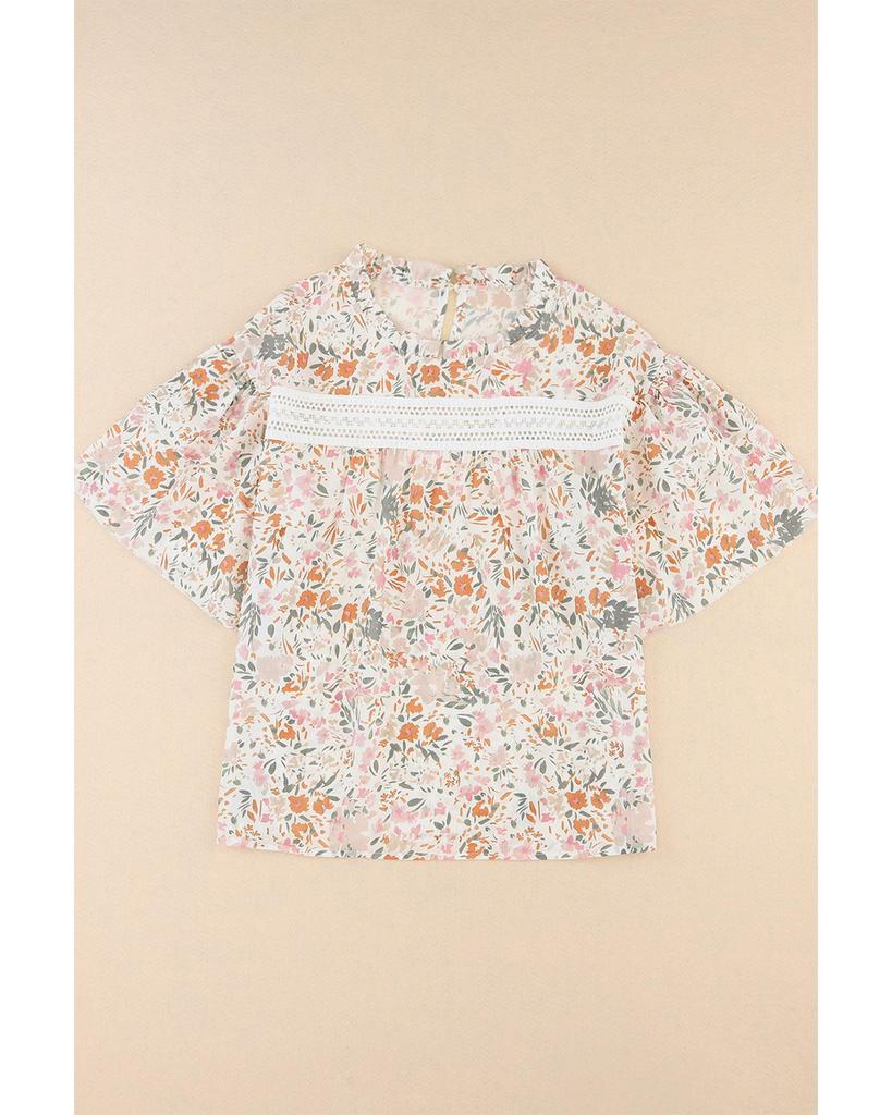 Azura Exchange Блузка с широкими рукавами-оборками и цветочным принтом