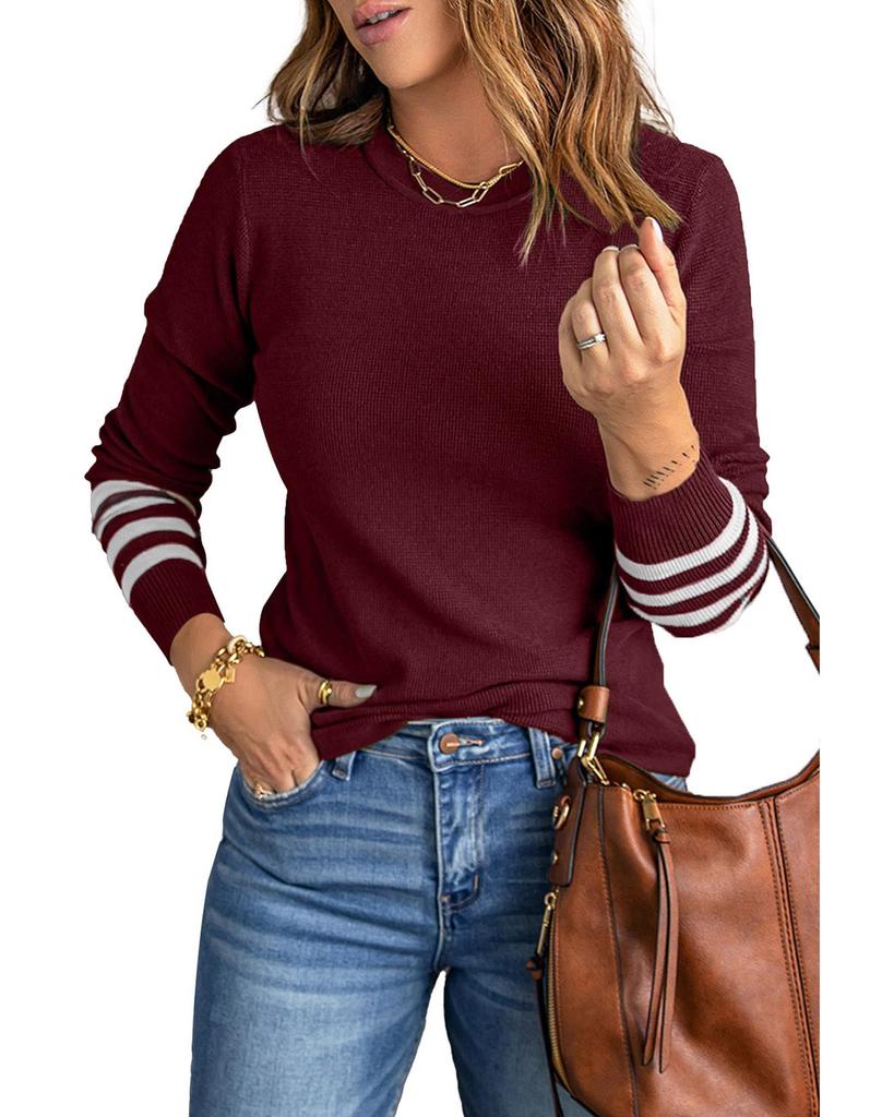 Azura Exchange Свитер однотонной вязки с полосатыми рукавами