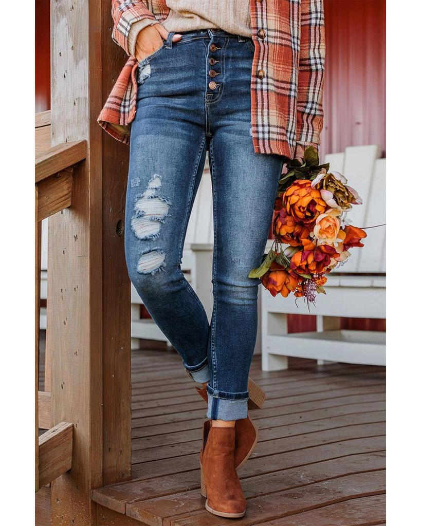 Azura Exchange Узкие джинсы с застежкой на пуговицу и высокой талией