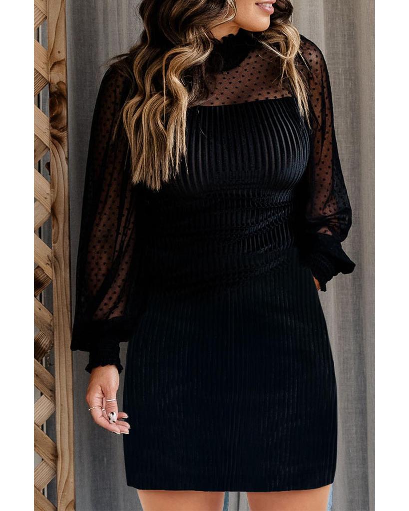 Azura Exchange Платье в полоску с сеткой в горошек и оборками на шее с рукавами-фонариками