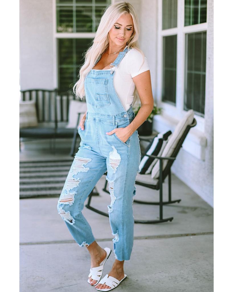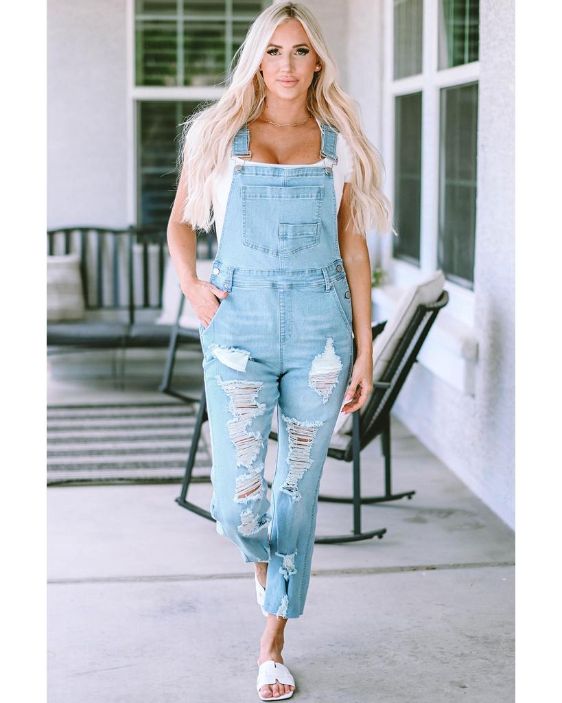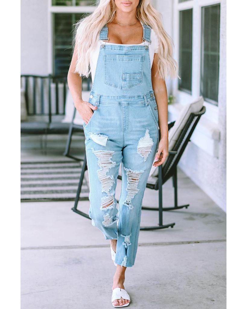 Azura Exchange Комбинезон из потертого денима с нагрудным карманом
