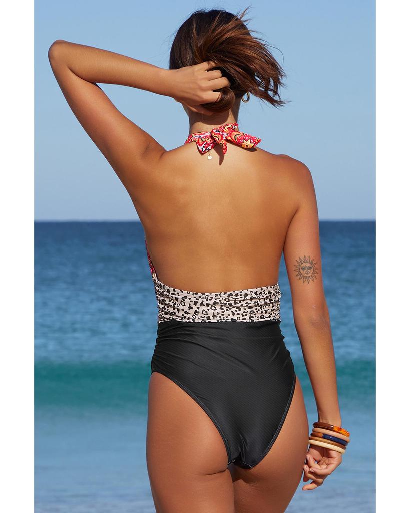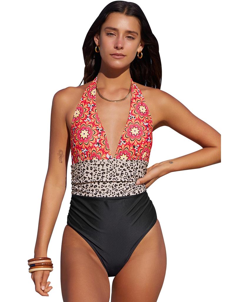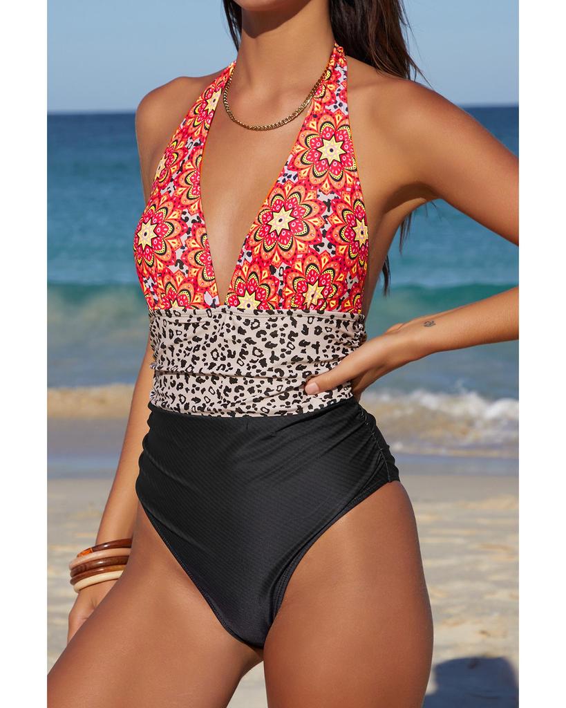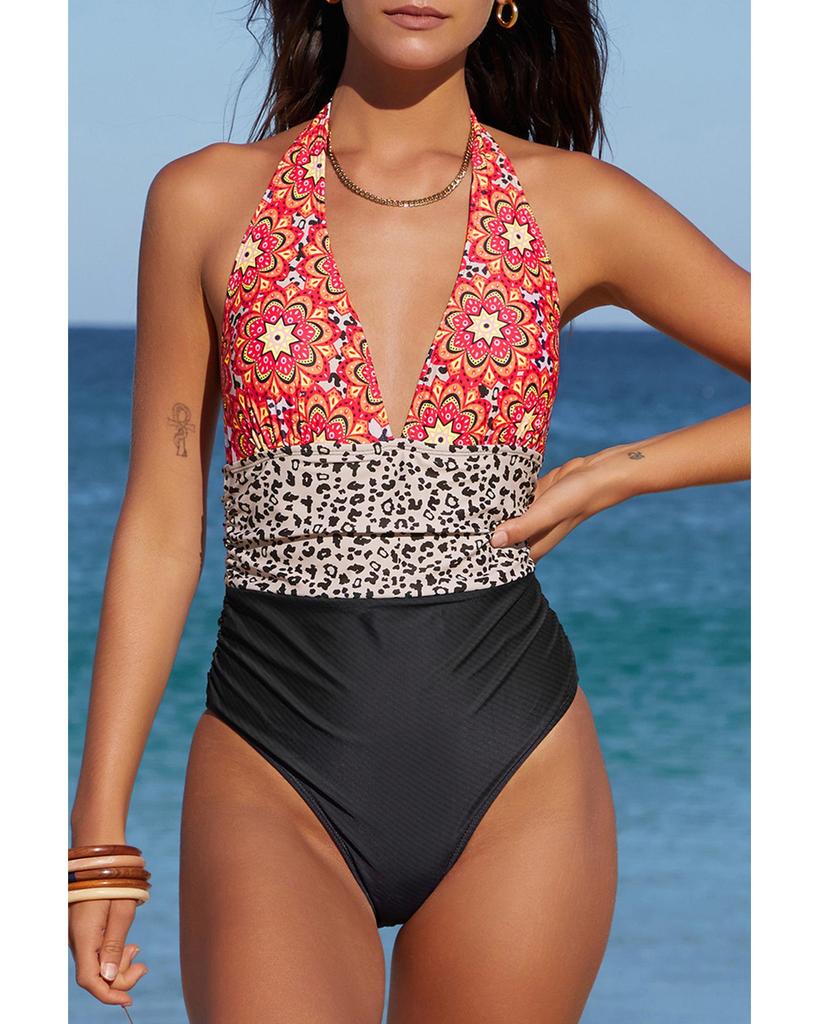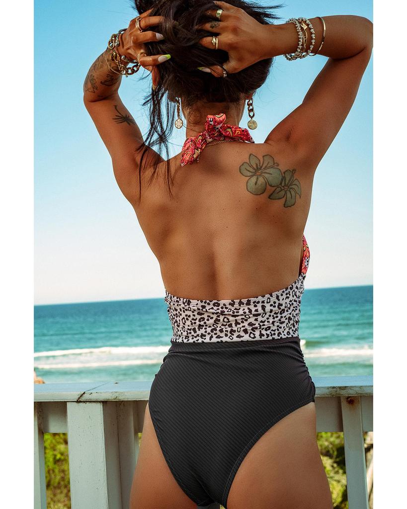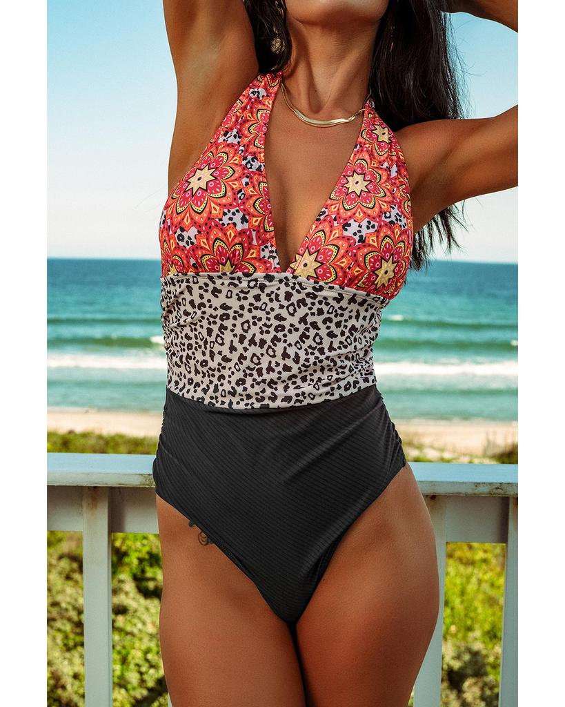 Azura Exchange Слитный купальник с глубоким V-образным вырезом и цветочным леопардовым принтом