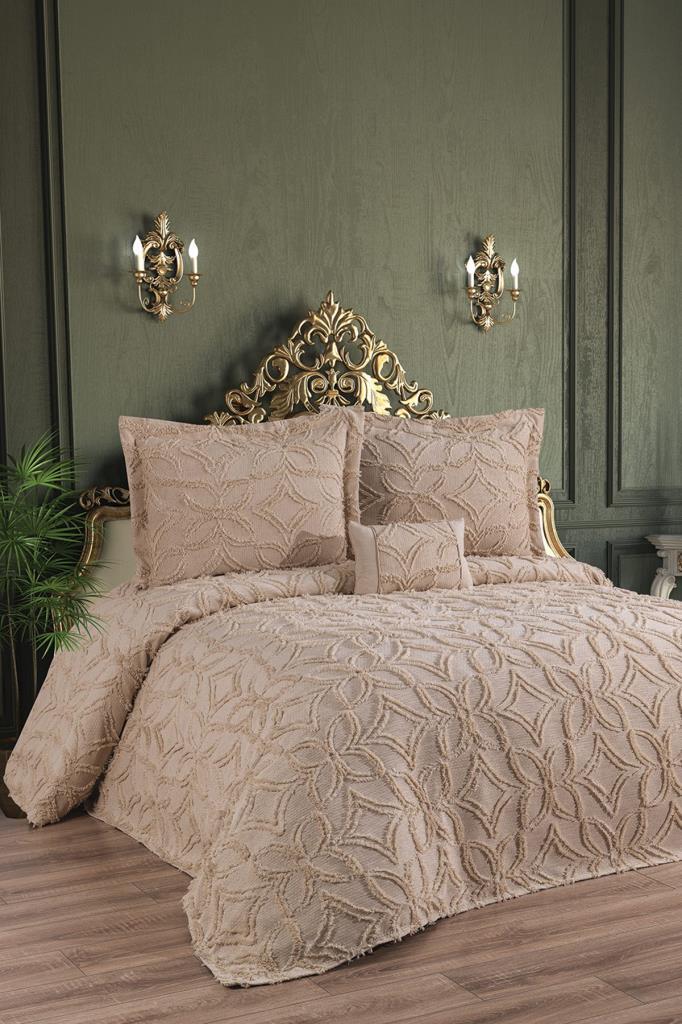 Комплект хлопкового покрывала Aslıhan King Size, покрывало 240x250, с наволочкой, двойной размер, хлопчатобумажная ткань, бежевый