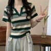 Дизайнерский смысл, нишевый летний свитер с воротником-поло, полосатой футболкой с короткими рукавами, короткий трикотажный топ из ледяного шелка для женщин