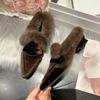 Модные женские зимние тапочки с толстым мехом, теплые туфли, тапочки на платформе и каблуках, повседневные хлопковые домашние тапочки, ботинки 2024 года, новые плюшевые женские туфли