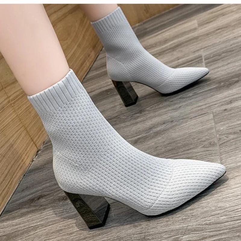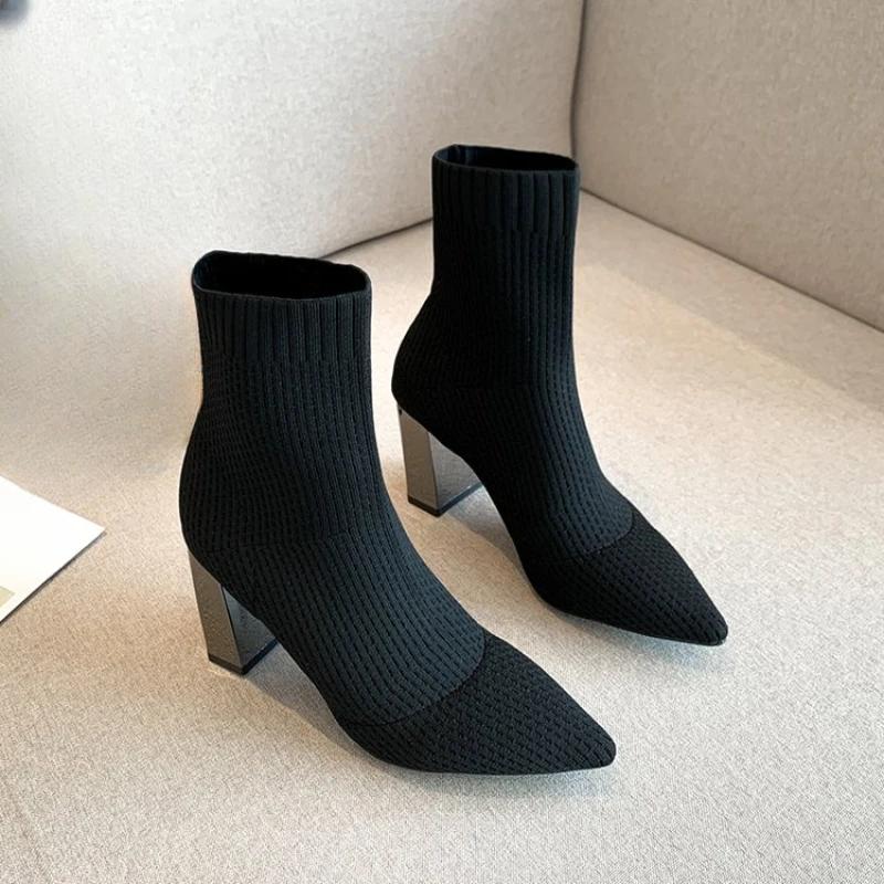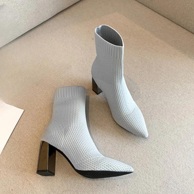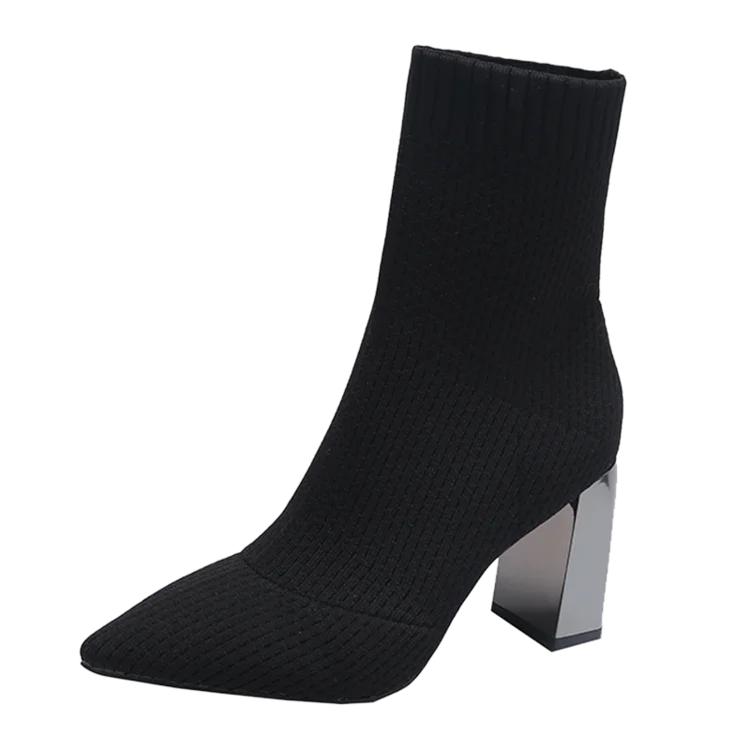 Мода 2024 года, новые осенне-зимние толстые высокие каблуки, универсальные легкие ботинки, женские остроносые ботинки со средним рукавом, женские