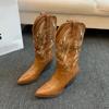 Мода вышивка женские ковбойские сапоги модные элегантные остроносые туфли без застежек квадратный каблук женские полусапожки до середины голени — купить товар онлайн с бесплатной доставкой по всему миру!