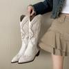Мода Винтаж V-образный вырез женские сапоги до колена в стиле вестерн модные остроносые туфли осень-зима толстый каблук дамы рыцарь длинные сапоги