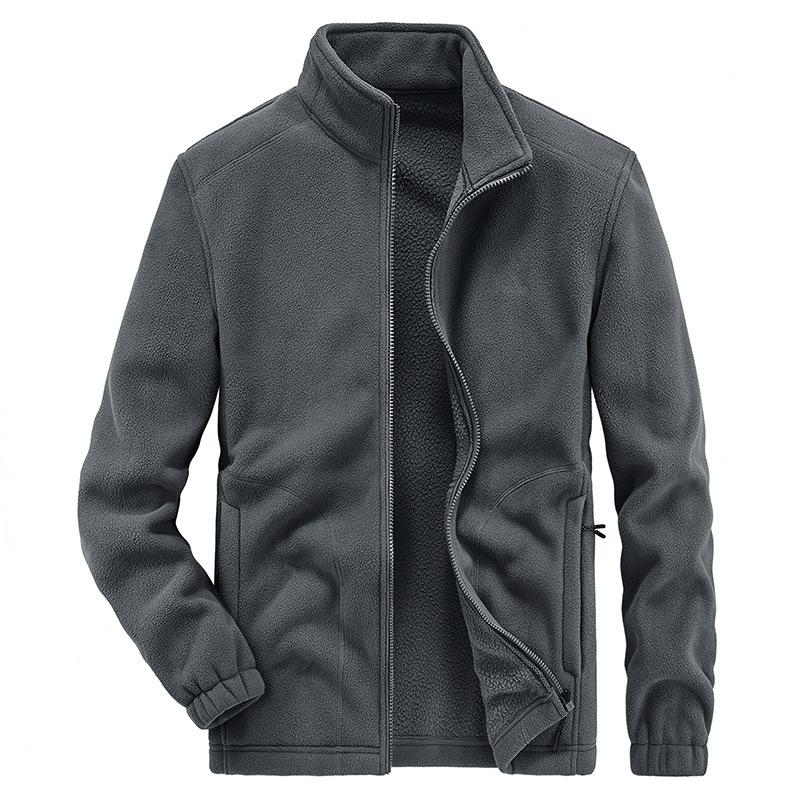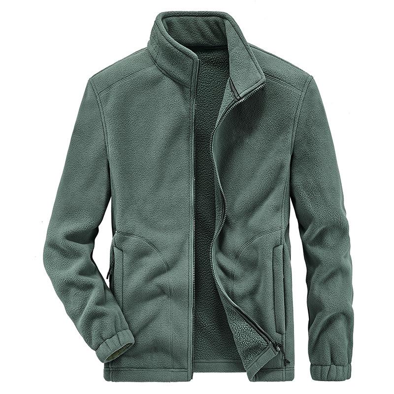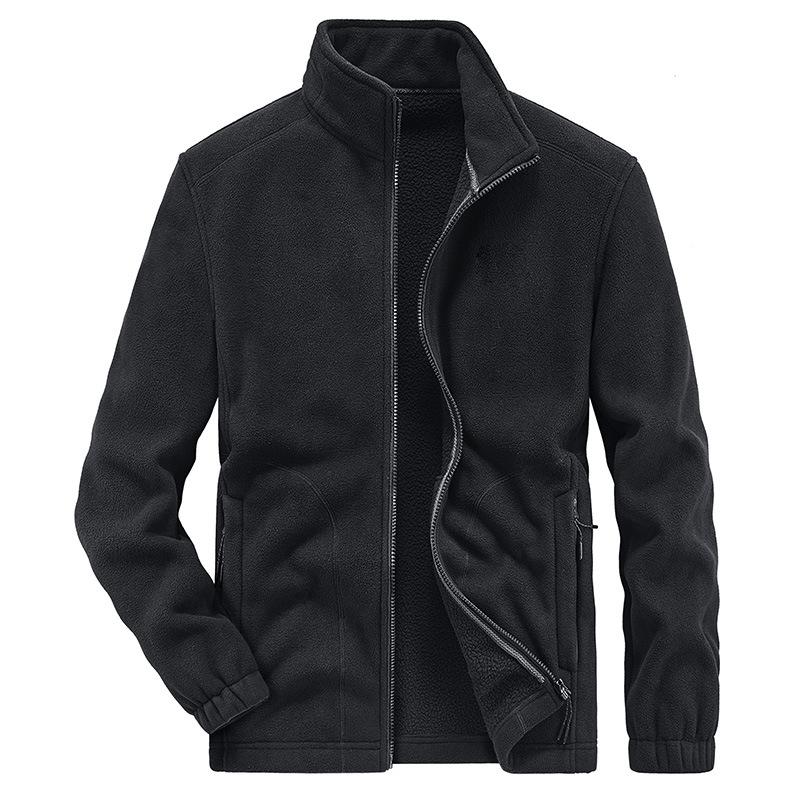 Осень и зима Новая мужская повседневная флисовая куртка большого размера Мужская однотонная повседневная куртка с воротником-стойкой