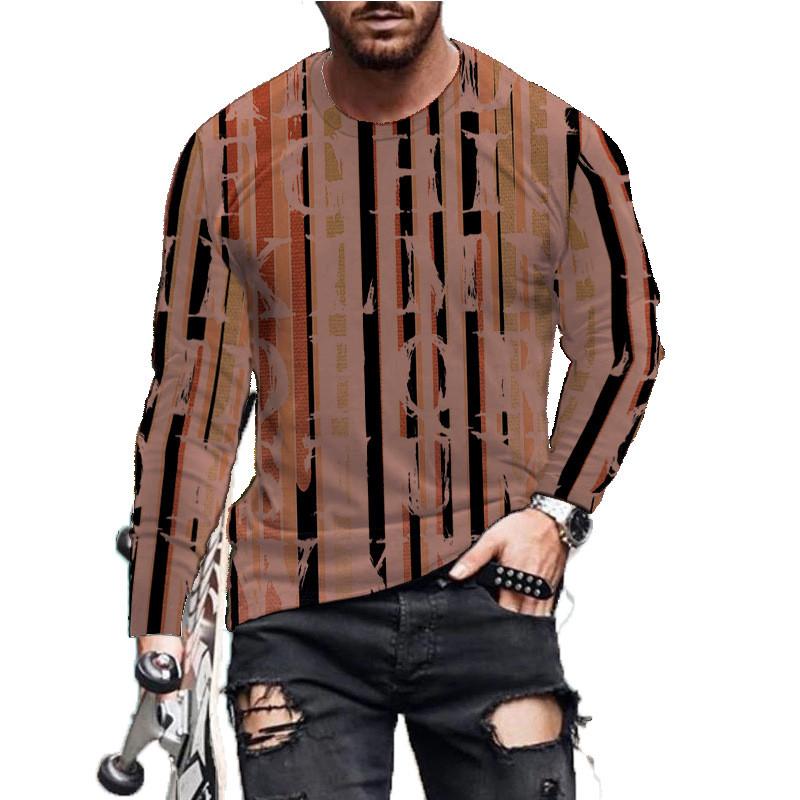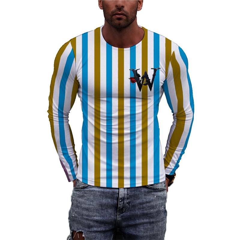 Длинные рукава полосатые мужские модные футболки свободные повседневные дышащие топы 3D печатные буквы уличный хип-хоп большой размер мужской топ футболка