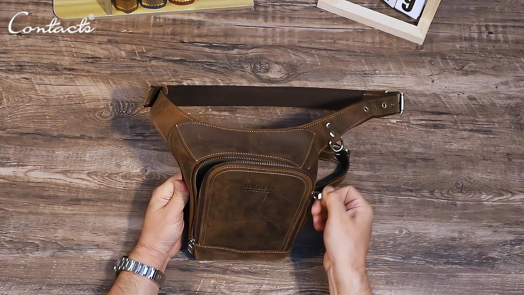 CONTACT'S Высококачественная винтажная поясная сумка из натуральной кожи для мужчин, дорожная поясная сумка для мотоциклистов