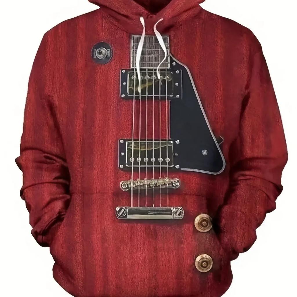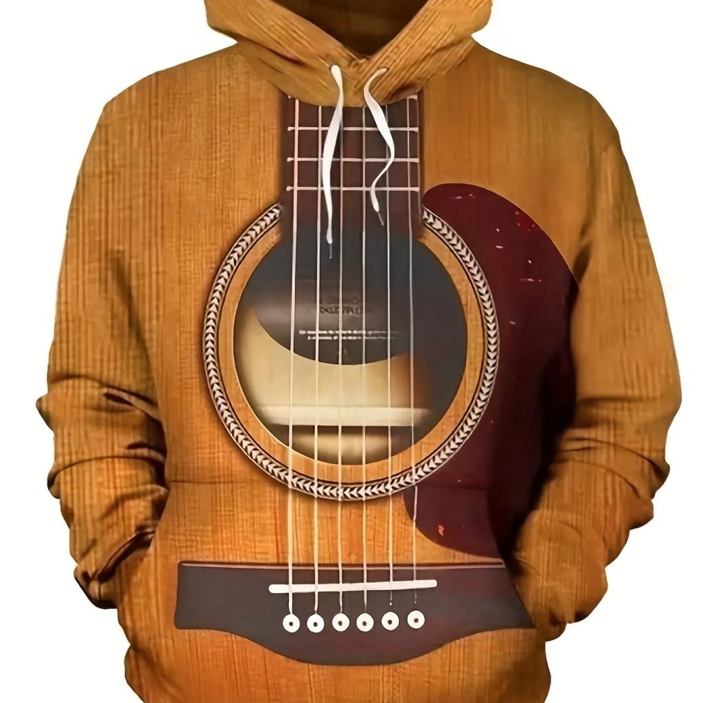 Толстовка с капюшоном и гитарой больших размеров с 3D-графическим принтом, стильная и уютная мужская модная одежда на весну и осень