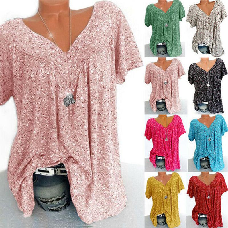 Женская летняя футболка с коротким рукавом и принтом, женская свободная блузка с V-образным вырезом, топы, футболка, праздничный размер плюс