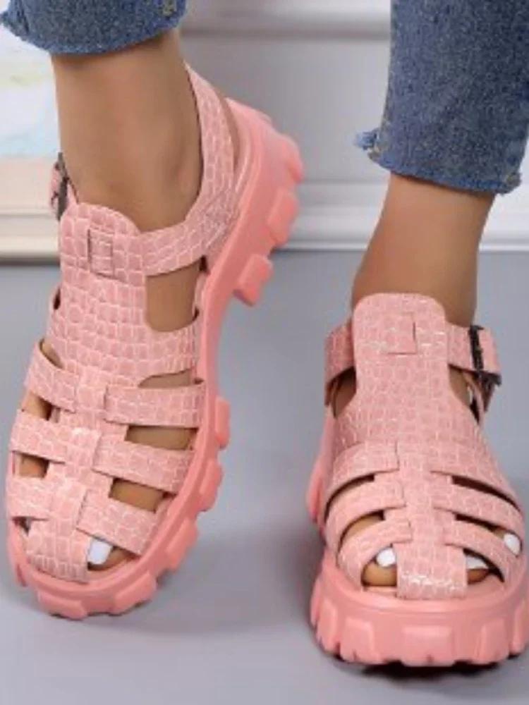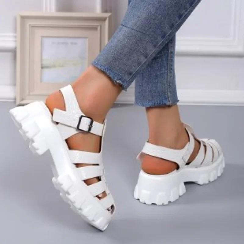 2024 Лидер продаж, новые сандалии на толстой подошве, женские сандалии с открытым носком, римские женские повседневные пляжные туфли, летние сандалии на платформе для женщин