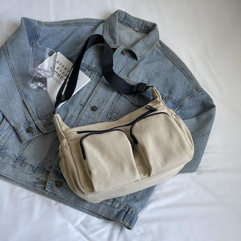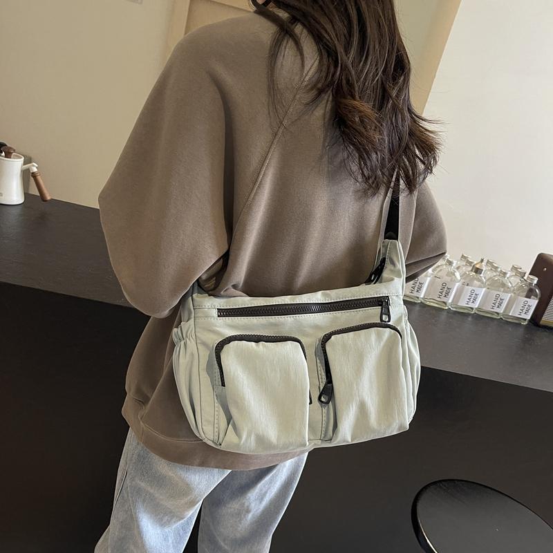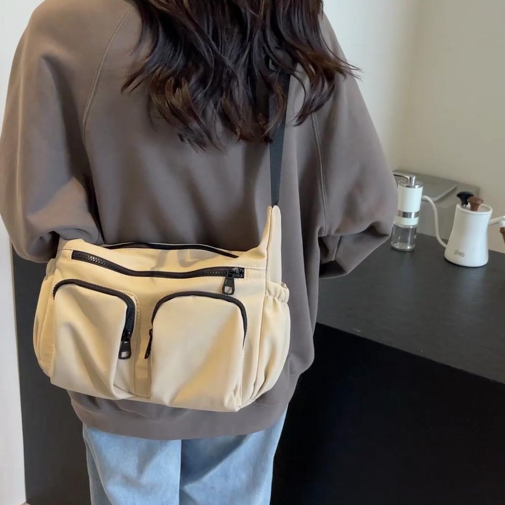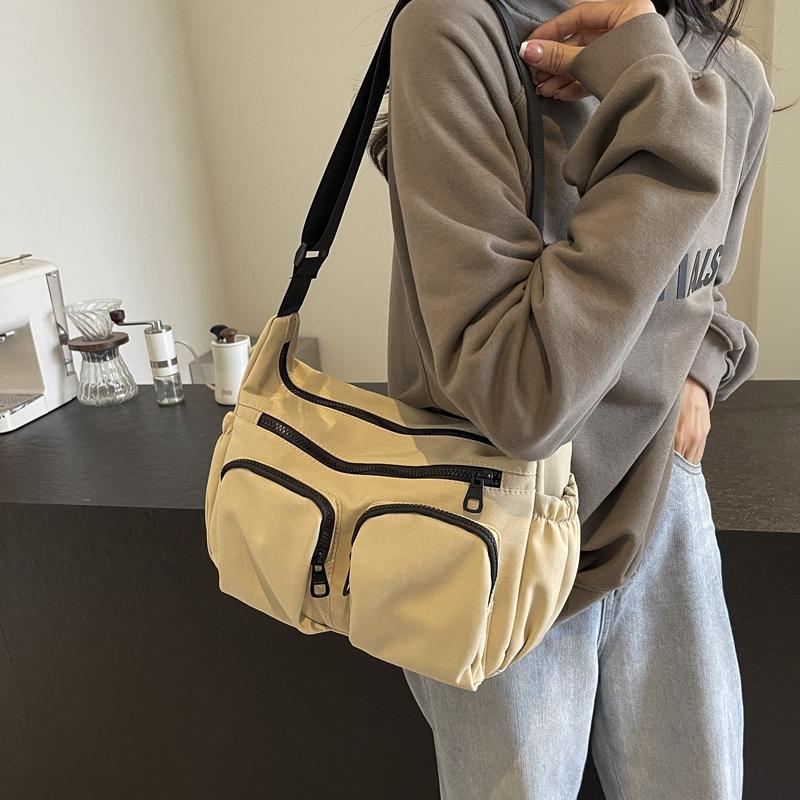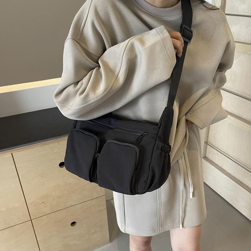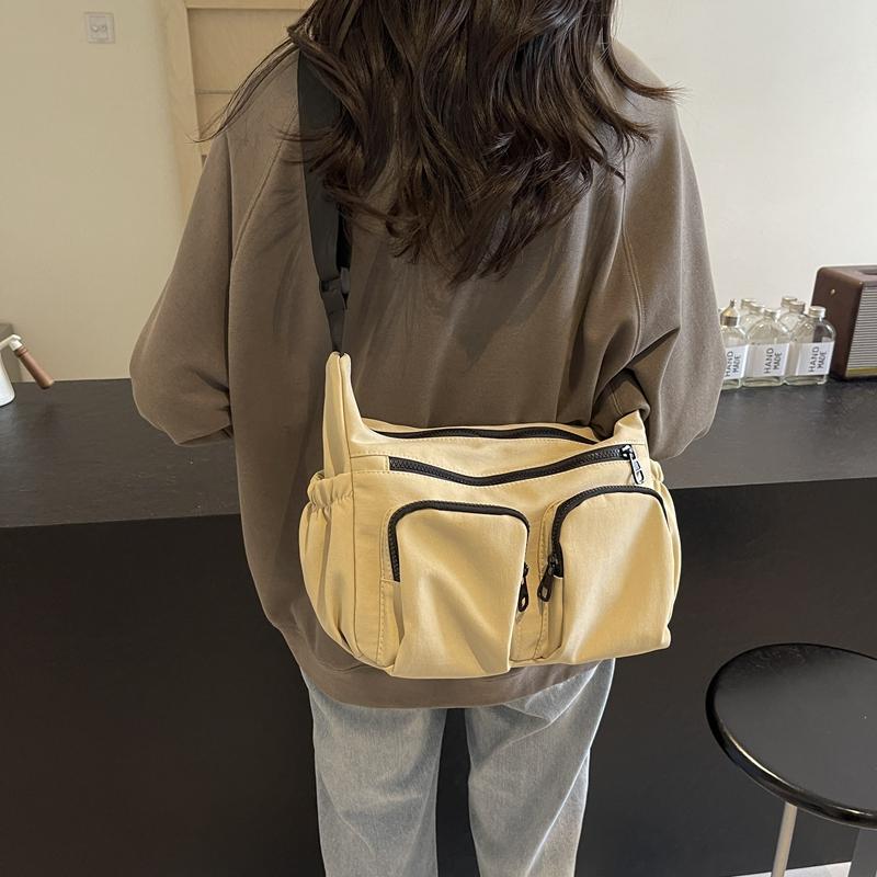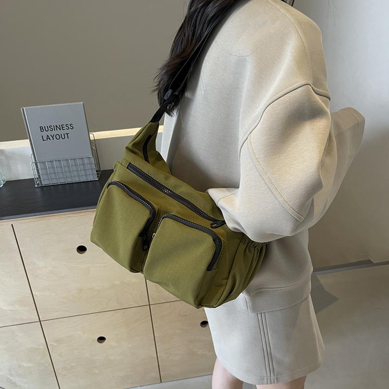 Большая вместительная женская сумка через плечо, однотонная сумка через плечо с несколькими карманами