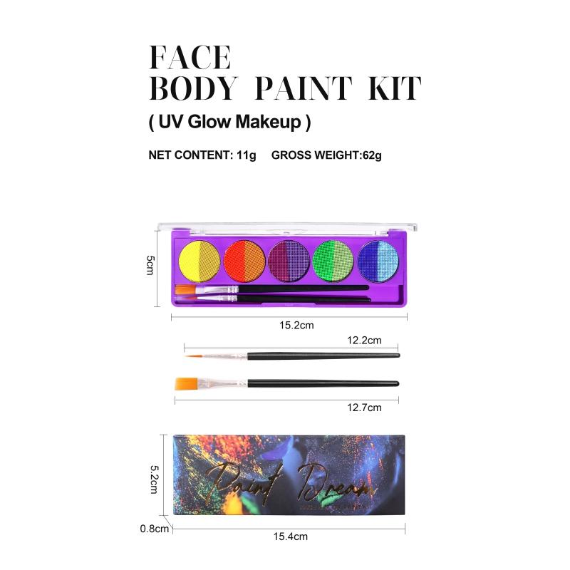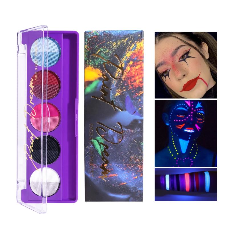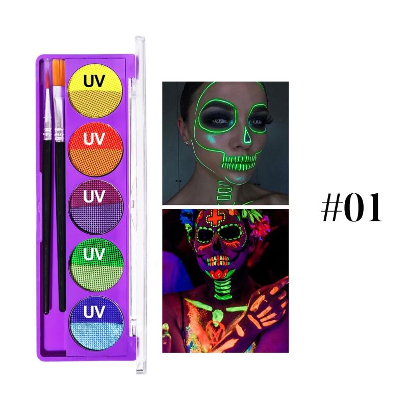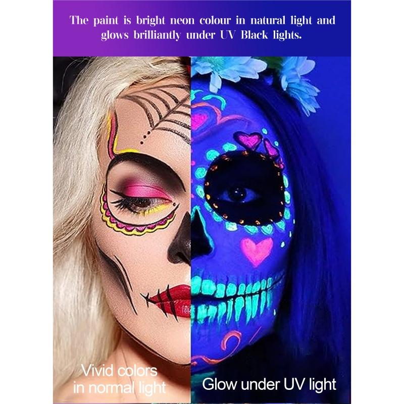 Набор для флуоресцентной окраски лица и тела на Хэллоуин, УФ-светящийся макияж, светящийся под УФ-светом