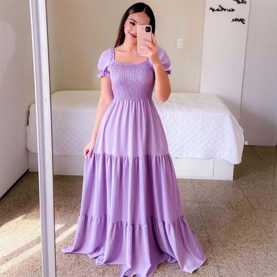 Характеристики: Основные особенности платья включают квадратный вырез, открытые плечи, плиссировку, А-силуэт, свободный лоскутный подол, однотонный цвет и дизайн длиной в пол..