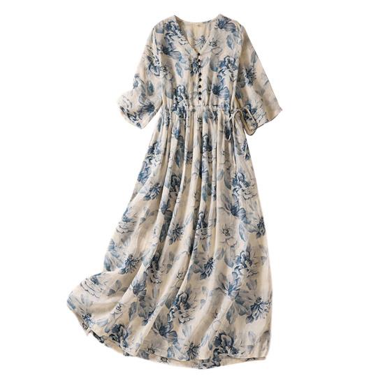 Это элегантное платье из высококачественного полиэстера обеспечивает повседневную свободную посадку и комфорт на весь день.. Мягкая и легкая ткань создает ощущение уюта, которое вам обязательно понравится.. Это платье в стиле ретро с нежными и элегантными складками с принтом на пышной юбке излучает изысканность и очарование..