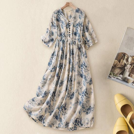 Стиль: Создайте образ в стиле ретро с этим женским платьем с принтом, отличающимся простым, но элегантным дизайном, излучающим изысканность и очарование.. Пышная юбка со складками придаст вашему ансамблю нотку винтажности.