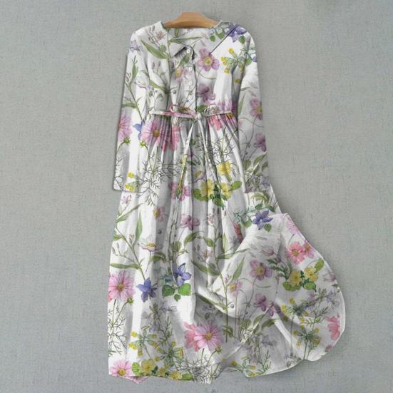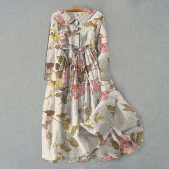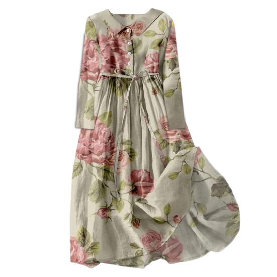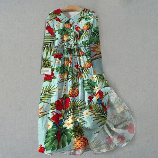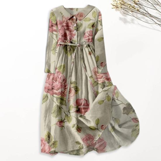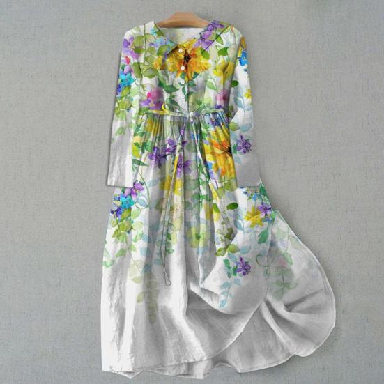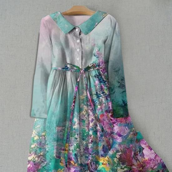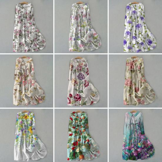 В этом шикарном женском платье из высококачественного полиэстера стиль сочетается с комфортом. Он создает милый и модный образ со спокойным женственным темпераментом.. Дизайн в богемном стиле с воротником с лацканами и однобортной застежкой излучает простоту и элегантность, при этом дышит и приятен для кожи.
