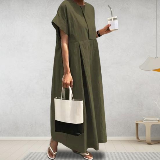 Подчеркните свой стиль с помощью этого женского платья с завышенной талией, которое подчеркнет вашу элегантность и очарование.. Свободный крой и плиссированные детали этого длинного платья стройнят, сохраняя при этом простой и модный вид..