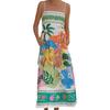 Летнее пляжное платье макси на тонких бретелях без рукавов с открытой спиной и мультяшным принтом, свободные боковые карманы, платье-комбинация трапециевидной формы с большим подолом, отпускной сарафан