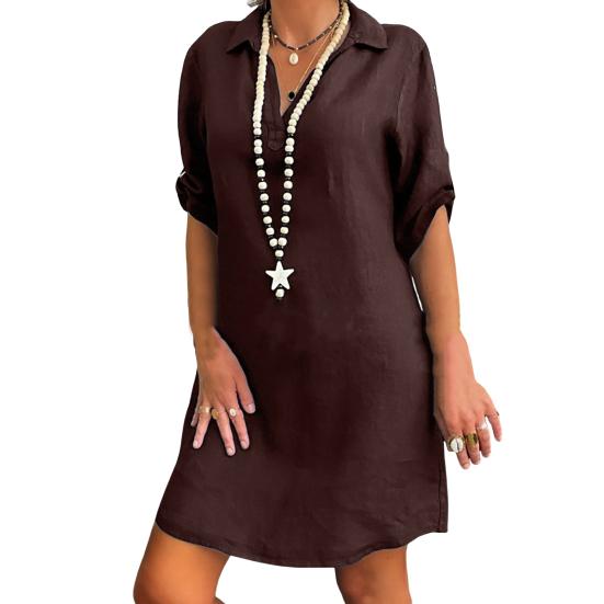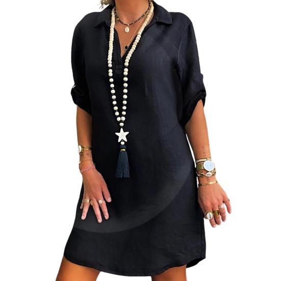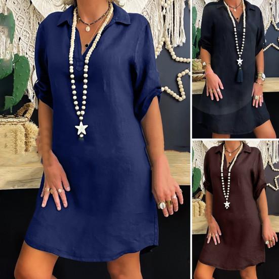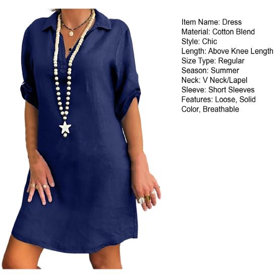 Стиль: Окунитесь в простоту и элегантность этого однотонного женского платья классического дизайна, излучающего изысканность.. Свободный силуэт создает непринужденный, но шикарный образ, подходящий для различных случаев.
