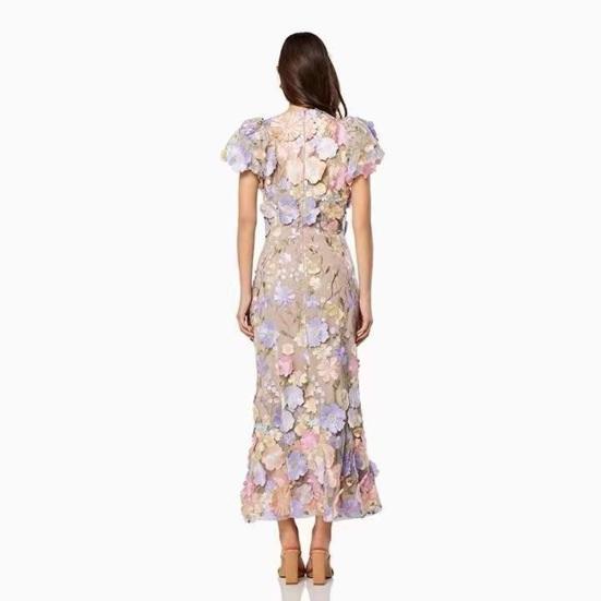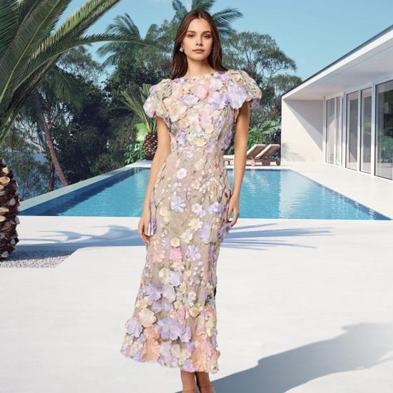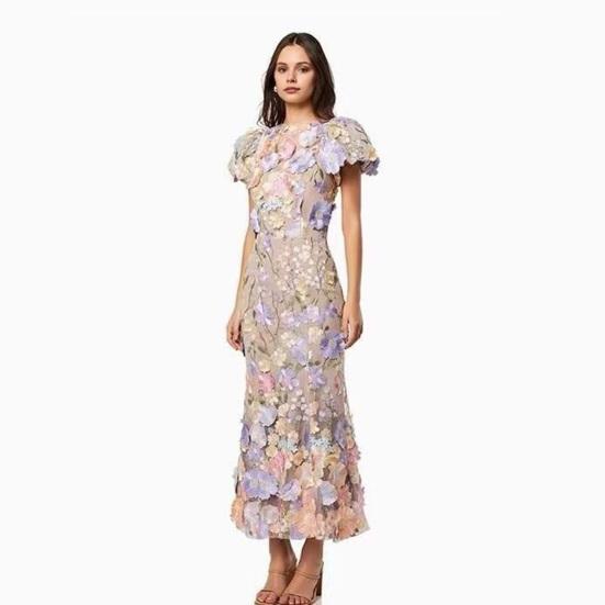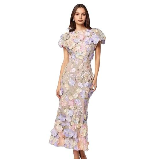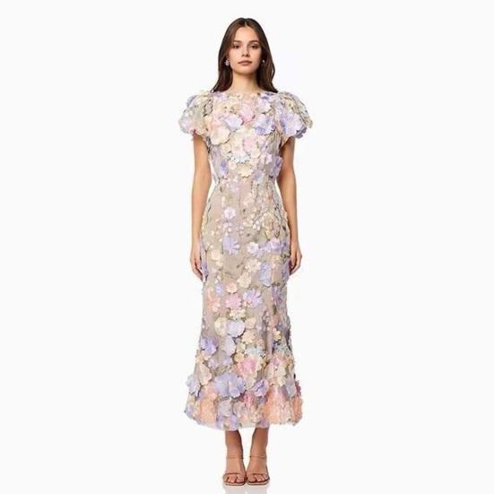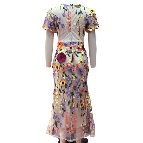Стиль: Подчеркните элегантность этого потрясающего женского платья со сложной трехмерной цветочной вышивкой, круглым вырезом и изящными рукавами-фонариками.. Модель «рыбий хвост», облегающая бедра, придаст вашему образу нотку изысканности и идеально подойдет тем, кто ищет милый и элегантный ансамбль.