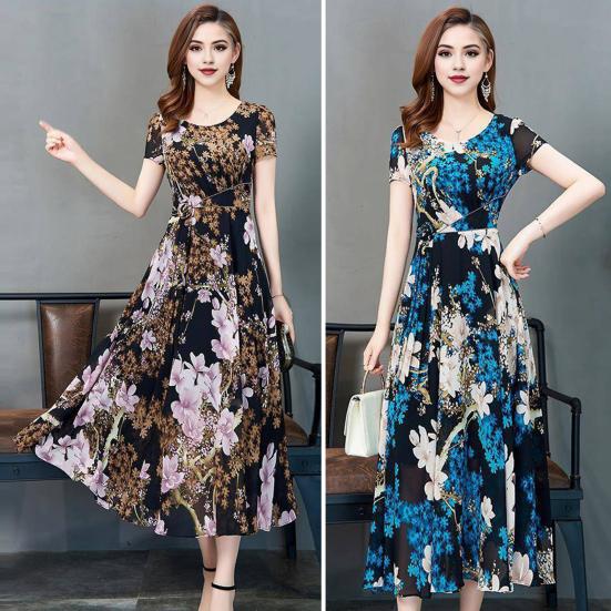 Элегантное женское платье с короткими рукавами и стильным принтом, создающим изысканный образ.. Дизайн талии подчеркивает линию талии, а дизайн большого края дополняет пропорции тела..