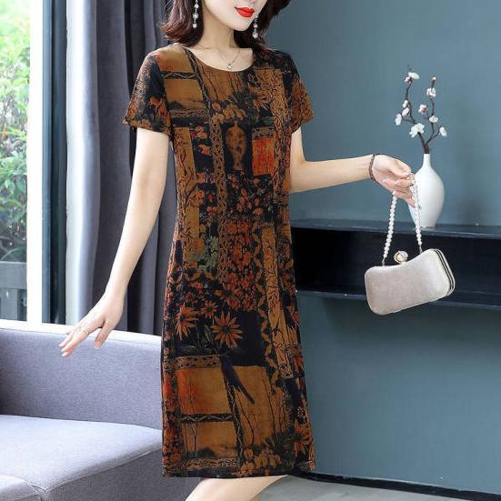 Летнее женское платье с принтом, короткими рукавами, круглым вырезом, плюс размер, свободный пуловер трапециевидной формы, длиной до колена, ретро-платье для свиданий, покупок, миди — купить товар онлайн с бесплатной доставкой по всему миру!