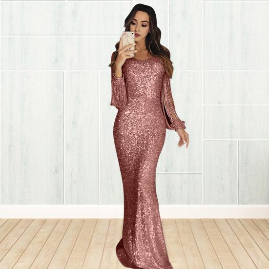 Стиль: Ощутите неподвластную времени элегантность этого платья макси с длинными рукавами и изящными кисточками.. Классический крой и изысканный силуэт делают его идеальным для различных случаев, от повседневной носки до официальных мероприятий, излучая чувство изящества и стиля.