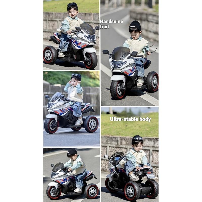 Детский электрический мотоцикл, трехколесный велосипед, детский автомобиль с двойным приводом и дистанционным управлением, Bluetooth, музыка, светодиодная подсветка