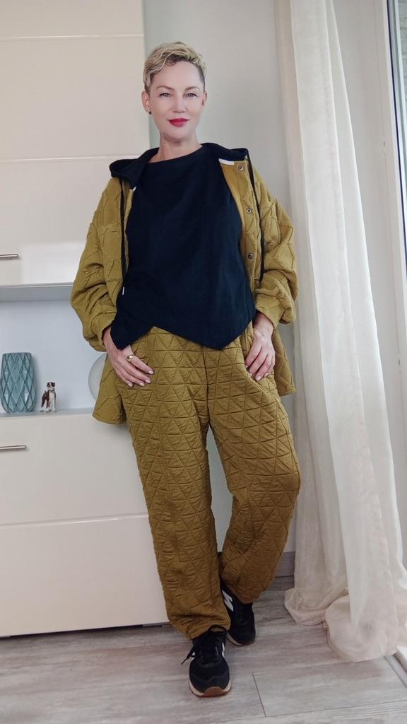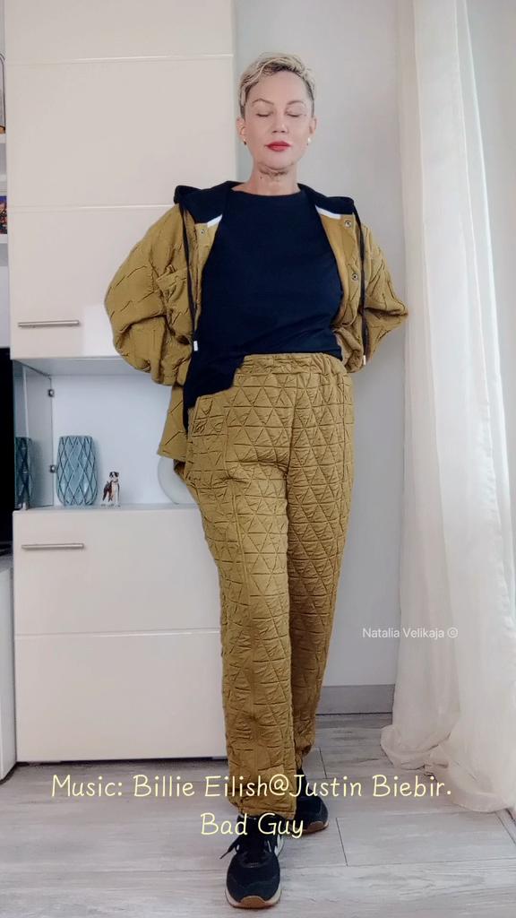 Брюки из стеганой ткани ✔️На выбор два цвета, есть еще бежевый. Размеры М-2xl. Мои параметры : 167, 96-82-98. На мне размер xl. Брюки сели слишком свободно, мне бы больше подошел размер М. Ткань эластичная, тянется очень хорошо, и выбранный мною размер подойдет на размер 52-54. Полностью соответствуют промофото. ✔️Фасон: Высокая посадка На талии широкая резинка Боковые карманы глубокие Сзади два накладных кармана Силуэт свободный, зауженный к низу Внизу складки . ✔️Ткань стеганая, выпуклая, верх из хлопка, изнанка синтетическая. По поводу тепла: на межсезонье отлично, зимой носить только с колготами. Пошив фабричный. 📐Замеры: ОТ 72-110 ОБ 126 Высота посадки 34 Длина внутреннего шва 70 Длина 99,5 Ширина брючины внизу 18,5 Ширина брючины в районе бедра 36,5