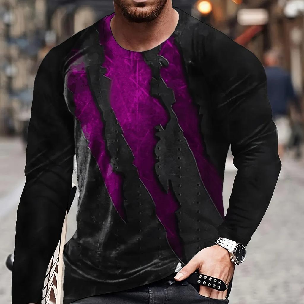 Мужская футболка с длинным рукавом и круглым вырезом с цветным 3D-принтом, весна-осень