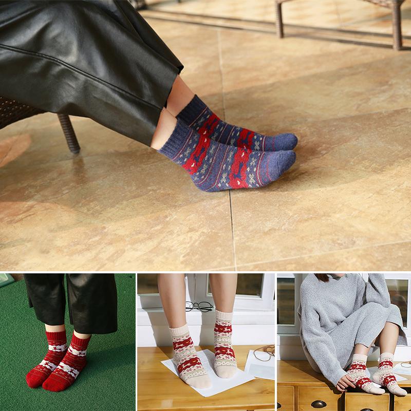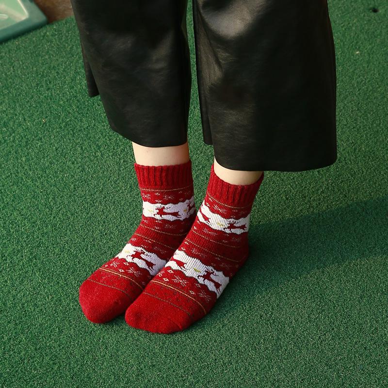 Женские носки с героями мультфильмов Женские носки Вязаные хлопковые носки с оленями Удобные зимние носки средней длины Один размер