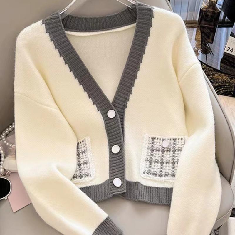 Осенне-зимний повседневный кардиган с длинным рукавом, свитер для женщин, модная куртка с V-образным вырезом, элегантные вязаные кардиганы для женщин, облегающий винтажный женский трикотаж 24793
