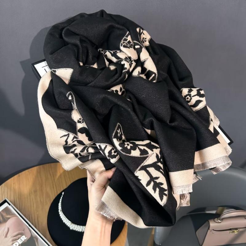 2024 Новый винтажный двухсторонний принтованный шарф из искусственного кашемира, утолщенный и теплый, высококачественный офисный платок