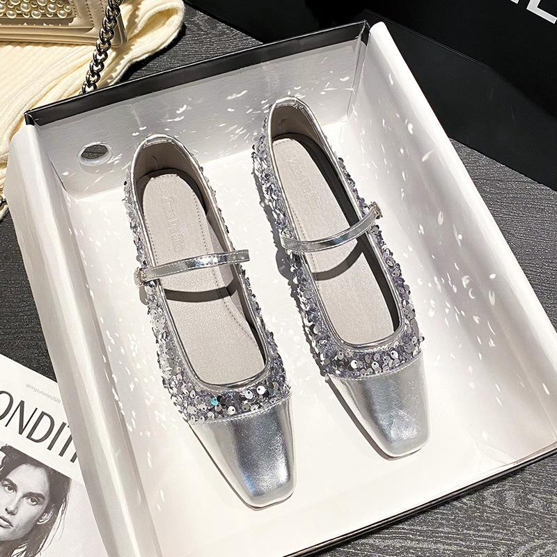 Туфли Мэри Джейн из серебристой кожи в стиле пэчворк, женские балетки с ремешком на щиколотке, блестящие мокасины, женские блестящие туфли — купить товар онлайн с бесплатной доставкой по всему миру!