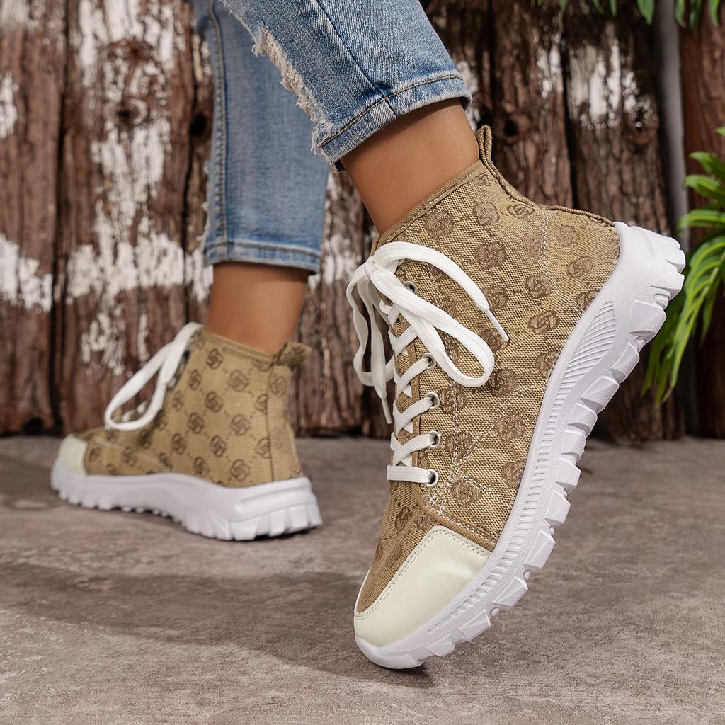 Мода 2024 НОВЫЕ женские туфли на шнуровке спереди с высоким верхом на плоской подошве из парусины Модные повседневные удобные кроссовки, увеличивающие рост