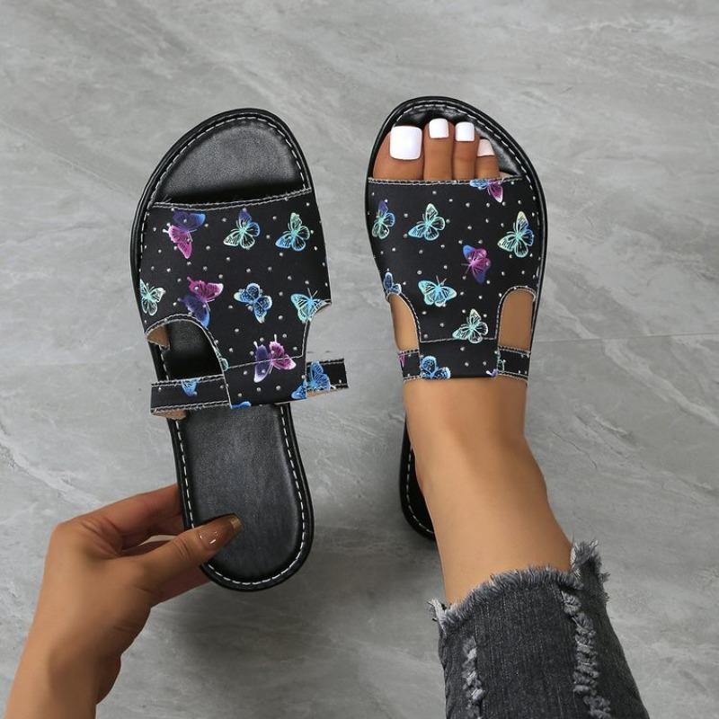 Модные летние новые сандалии с принтом бабочек на плоской подошве, легкие, дышащие, нескользящие — купить товар онлайн с бесплатной доставкой по всему миру!