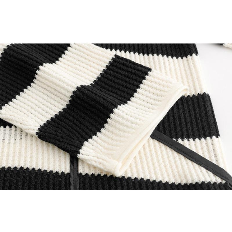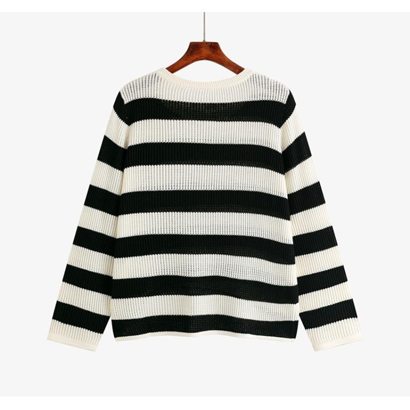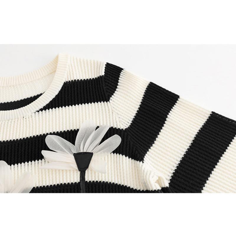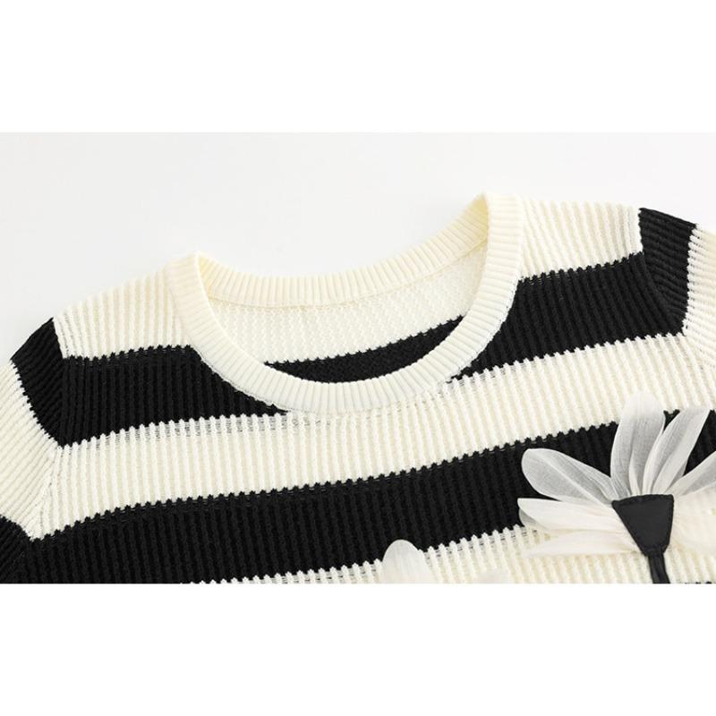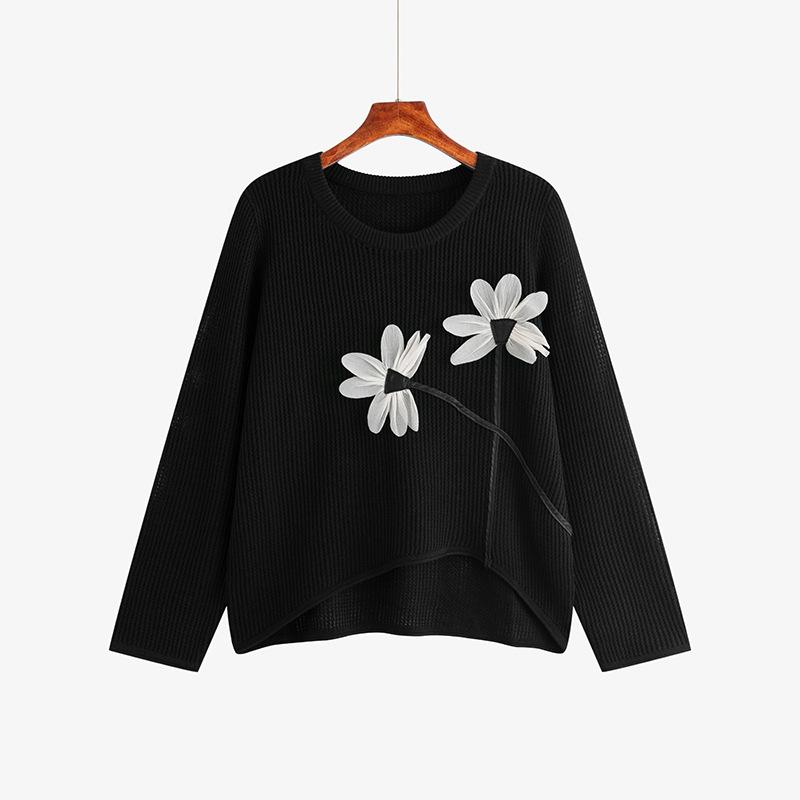 Плюс Размер Женский Стереоскопический Цветочный Длинный Рукав Топ Осенний Полосатый Трикотаж