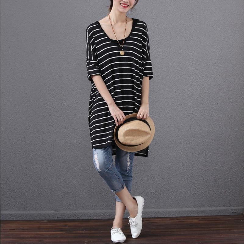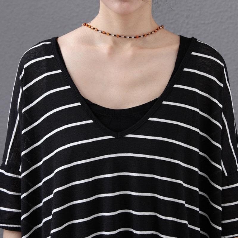 Футболка большого размера для женщин в полоску с рукавами «летучая мышь» и короткими рукавами средней длины