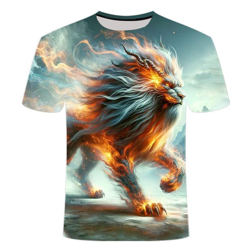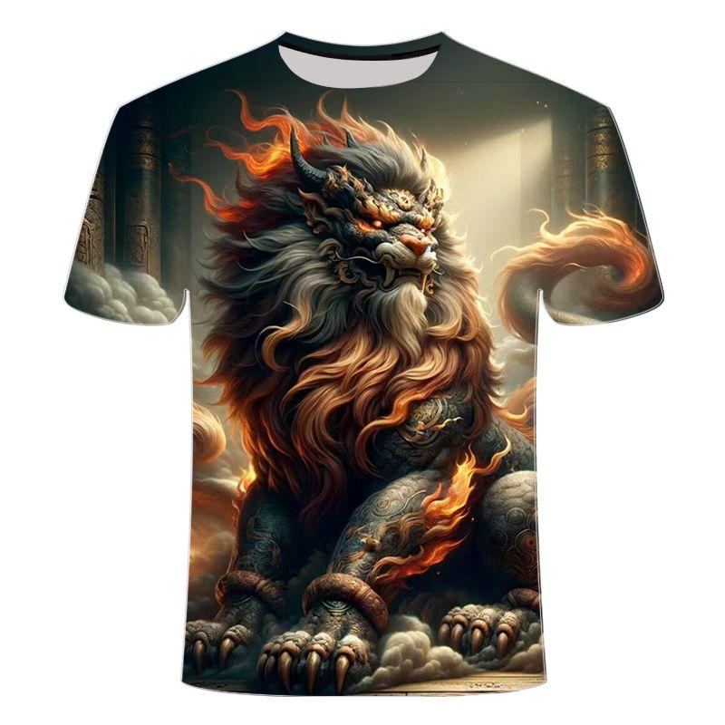 Летняя мужская свободная футболка больших размеров с 3D-принтом с изображением древнего мифического животного, персонализированная, модная, дышащая рубашка с короткими рукавами