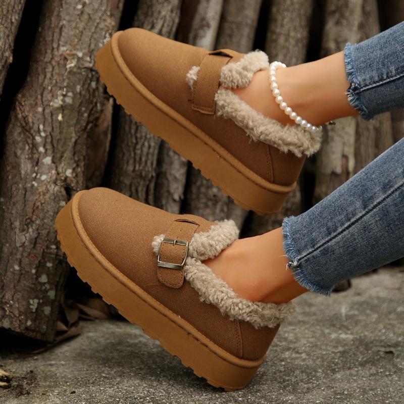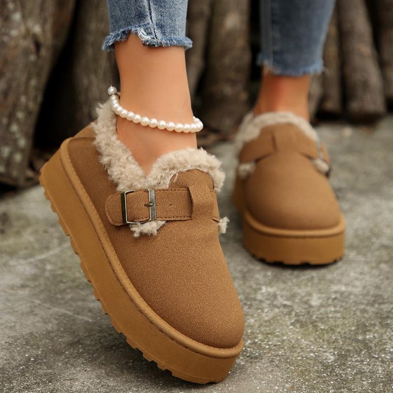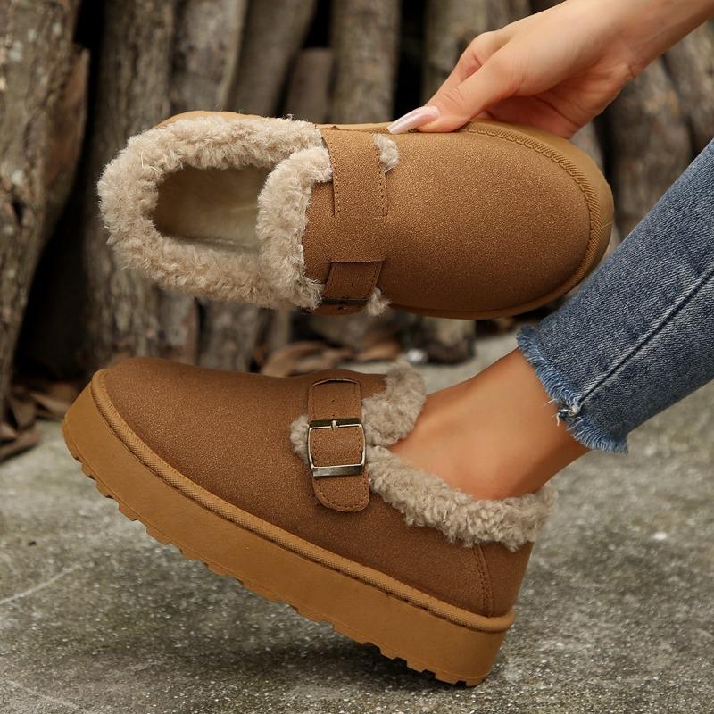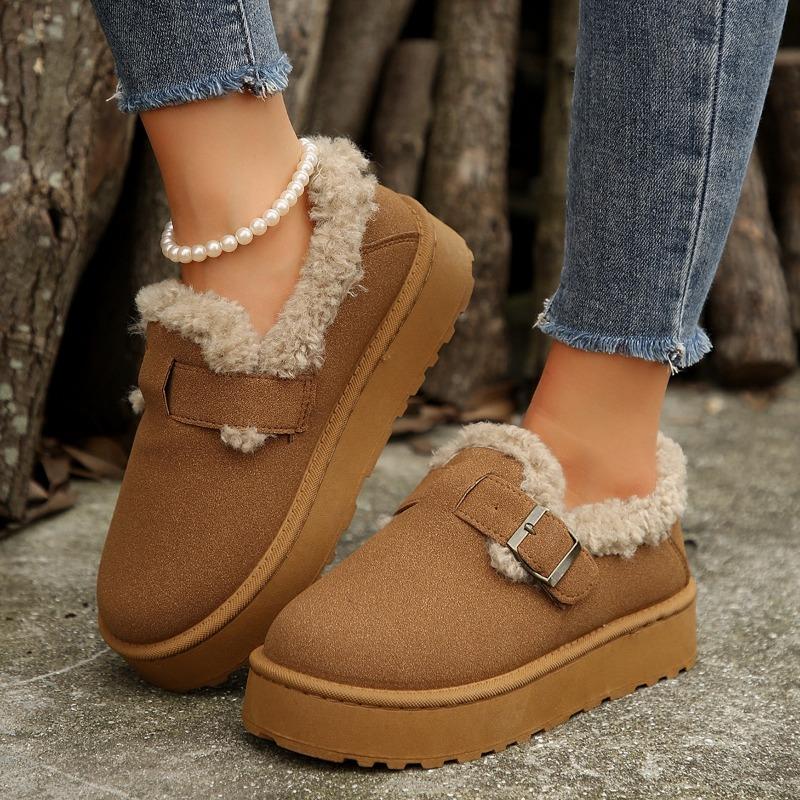 Мода 2024 года. Новая зимняя женская обувь. Плюшевые модные ретро-женские тапочки на плоской подошве. Ботинки на платформе.